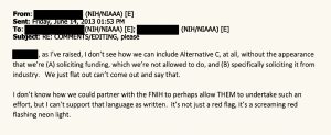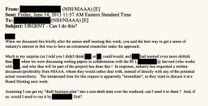 The NIAAA wanted someone else to present the idea of the study to overcome their prohibition of solicitation, even though they’d obviously set this whole thing in motion. The alcohol industry was excited about what they heard directly from the researcher, but wanted the plan to come “from NIAAA.”