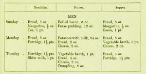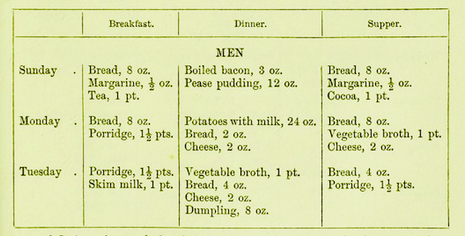 Rowntree’s proposed minimum daily food allowance to maintain “physical efficiency.” Courtesy the Wellcome Collection