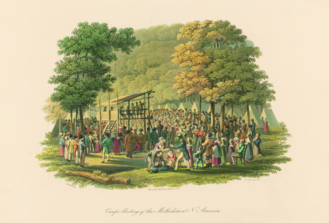 Camp meeting of the Methodists in North America, c. 1819; engraving by Jacques Gérard Milbert, 1766–1840; courtesy the Library of Congress.