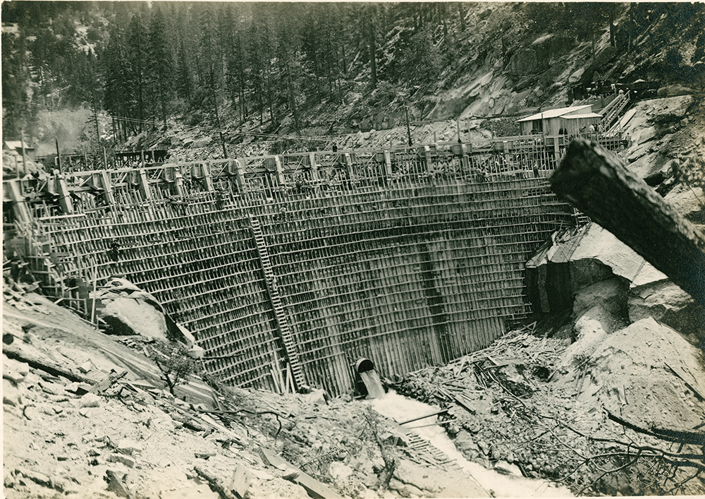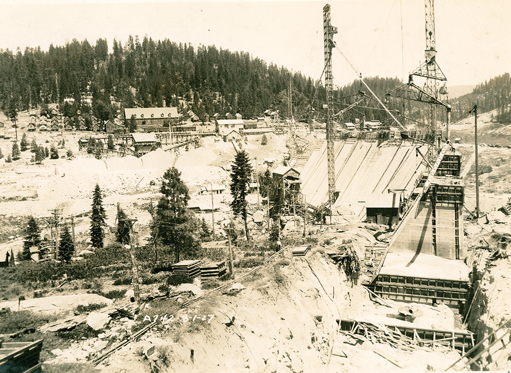 Shaver Dam construction, August 1927. By Manley Freeman White, 1882–1953, courtesy California State Library.