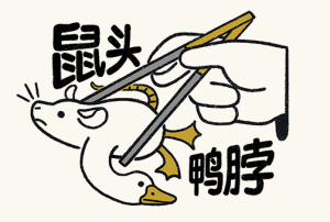 But my favourite one to come out of China in the last few years is definitely 鼠头鸭脖, “rat head duck neck.” It came from an incident in Jiangxi, where a student found a rat head in his cafeteria lunch. The school and local authorities both swore up and down that it was just a piece of duck neck, despite photos and videos taken by the student. The event continued to gain attention on the internet until federal authorities investigated and confirmed that it was, in fact, a rat head. A lot of people call the incident the new millennia’s “指鹿为马” (“call a deer a horse”), a story of second-century eunuch and politician Zhao Gao showing off how much power he wielded in government by calling a deer a horse and daring to see if anyone would correct him. Now, the term “rat head duck neck” is used to refer to any official notices or announcements that contain such obvious, outright lies that it’s almost like they’re not even trying.