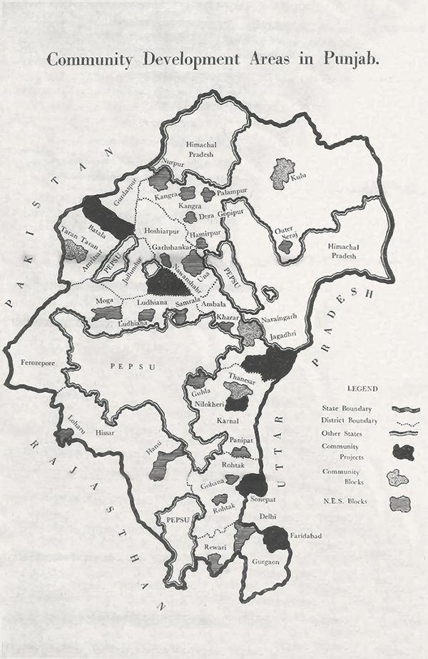“Community development areas in Punjab.” National Extension Service and Community Projects in Punjab (Chandigarh: Community Projects Administration, Punjab Government, 1955).