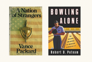Social scientists studying a representative town in America’s heartland reported widespread concern among its residents that friendship was waning, that true friends were fewer than a generation before. This report, Middletown, was published in 1929. About two decades later, The Lonely Crowd, a sociological study of American character in the post-war era, described its subjects as shallow conformists, eager to imitate others but lacking in deep connections. Twenty years after that, best-selling author Vance Packard declared in A Nation of Strangers that “personal isolation is becoming a major social fact of our time.” In the 1990s, political scientist Robert Putnam famously described Americans as bowling — and doing much more — alone.1