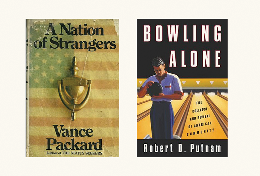Social scientists studying a representative town in America’s heartland reported widespread concern among its residents that friendship was waning, that true friends were fewer than a generation before. This report, Middletown, was published in 1929. About two decades later, The Lonely Crowd, a sociological study of American character in the post-war era, described its subjects as shallow conformists, eager to imitate others but lacking in deep connections. Twenty years after that, best-selling author Vance Packard declared in A Nation of Strangers that “personal isolation is becoming a major social fact of our time.” In the 1990s, political scientist Robert Putnam famously described Americans as bowling — and doing much more — alone.